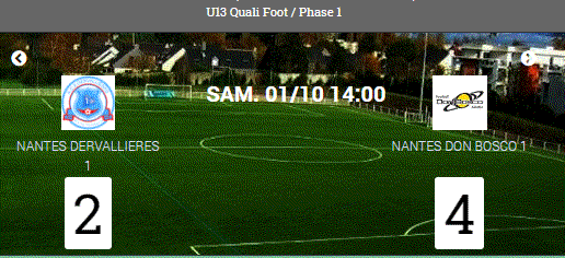 Une première période qui commença de la pire des manières puisqu'après moins d'une minute de jeu, une passe trop molle entre le milieu gauche et le central, permis à la rapide pointe des Dervallières de crucifier le jeune gardien de Don Bosco. Une minute au chrono, un à zéro au tableau d'affichage et les premières gouttes de pluie qui caressaient le synthétique de l'équipe locale. Loin d'être démoralisé et conscient du potentiel de son groupe, le jeune dirigeant pu apprécier la remotivation de ses troupes par son capitaine, Grégoire Biraud, qui utilisa les bons mots pour relancer la dynamique des siens. Le groupe prit la mesure de ses adversaires, fit tourner le ballon calmement, prenant conscience de l'organisation de leurs adversaires du jour. Minutieusement et avec solidarité, le groupe utilisa les ailes comme demandé lors du discours d'avant match, l'égalisation ne traîna pas. La mi-temps avança à un rythme de plus en plus rapide, nos U13A devinrent de plus en plus percutant ce qui permis aux jeunes joueurs d'Anthony Glotain de creuser l'écart, inscrivant un deuxième, troisième puis quatrième but à la vingt-cinquième minute de jeu. Un écart conséquent de trois buts qui fut légèrement réduit quelques secondes avant la pause sur une erreur de concentration de la défense jaune et verte.